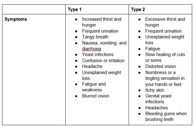 Type 1 vs type 2 diabetes symptoms