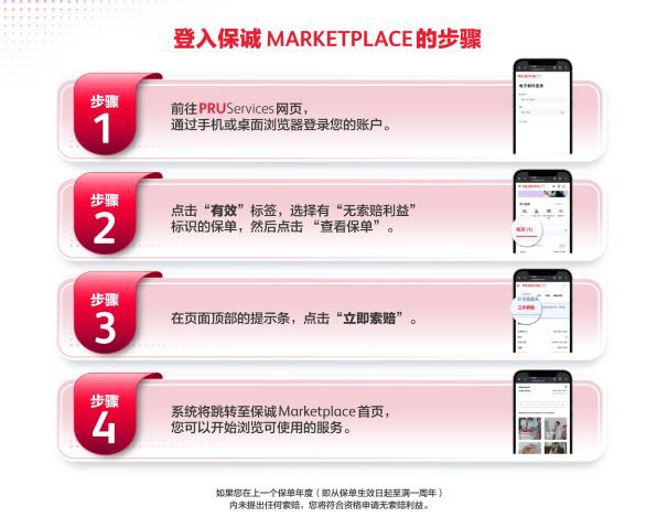 通过PRUServices 的 Prudential Marketplace 平台兑换礼券,以享用相关医疗健康服务;或